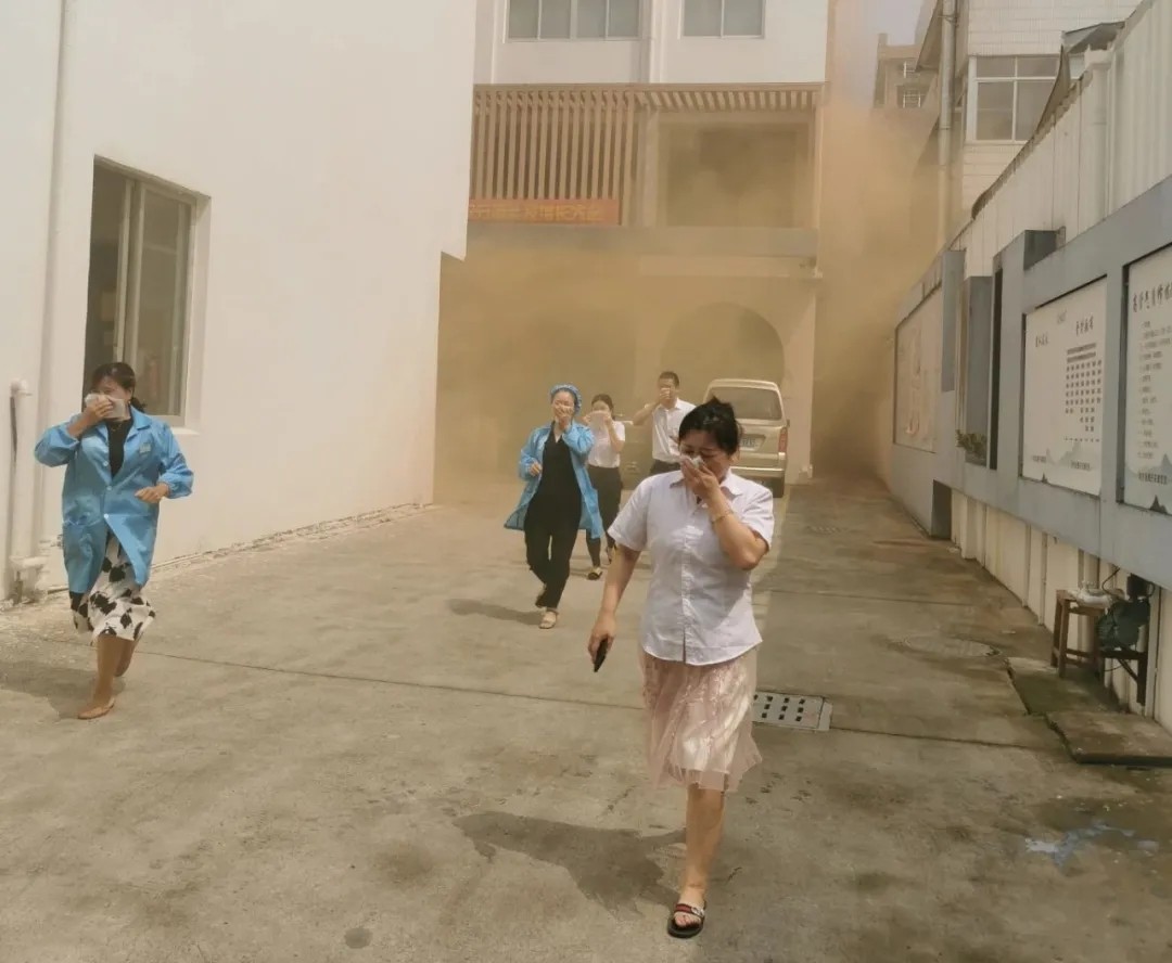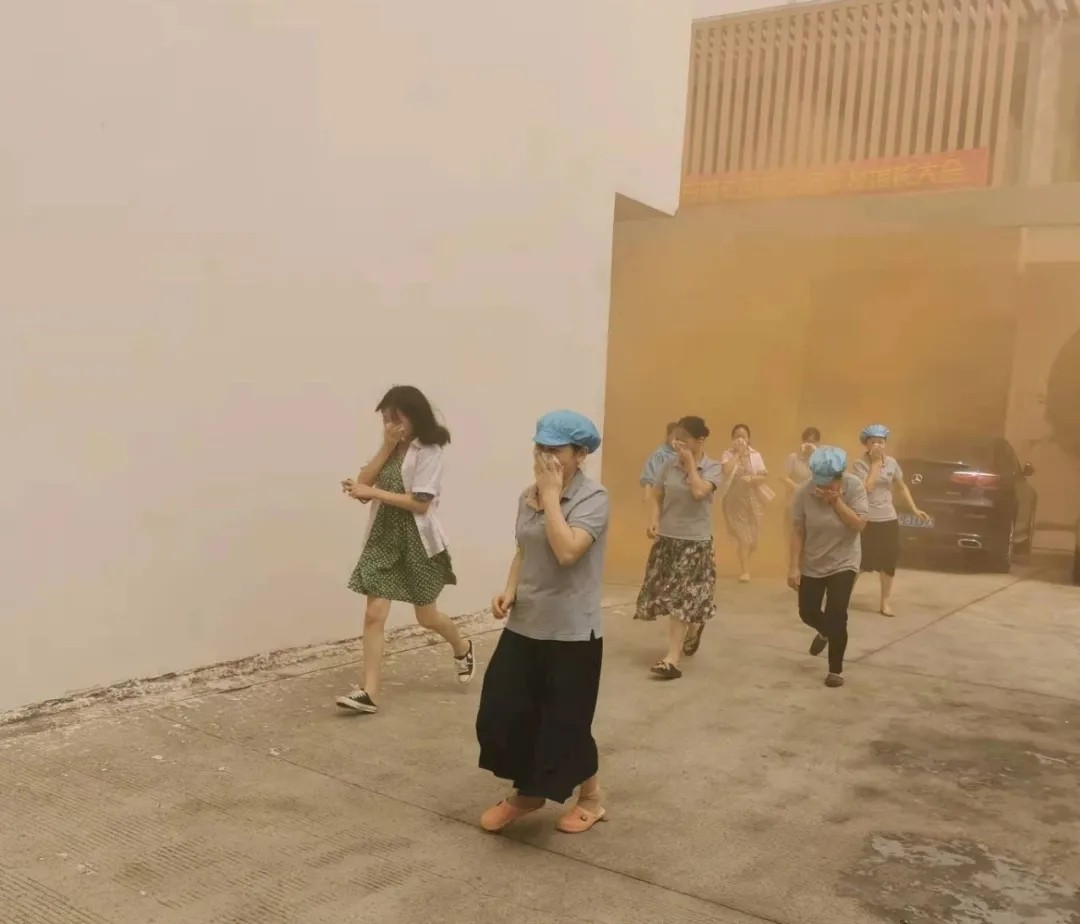 隨著(zhù)煙霧的蔓延、警報的拉響,消防演練正式進(jìn)入主題。各樓層組長(cháng)在聽(tīng)到警報后緊張、有序地組織帶領(lǐng)自己小組的人員快速撤離至安全地帶。整個(gè)撤離過(guò)程做到了快速、安全、有序。