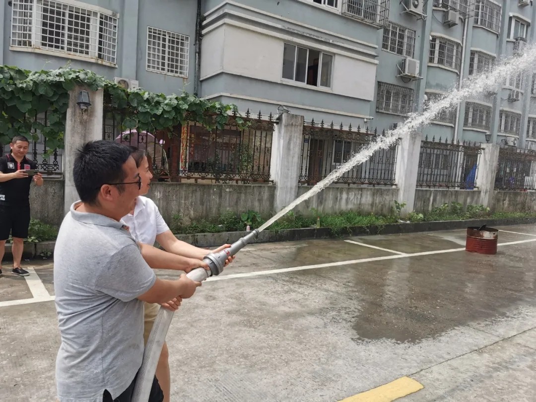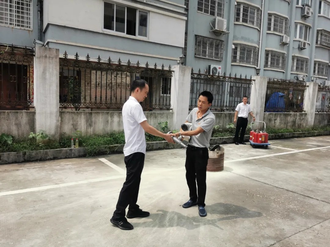隨后,朱樹(shù)清和陳隆江同志為我們講解并演示了滅火器及消防水帶的使用方法。緊接著(zhù),員工們也進(jìn)行了實(shí)操滅火,進(jìn)一步提高了大家對于火災的防控能力。