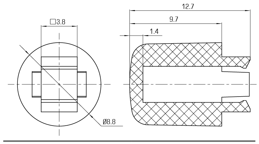 SC2鍵帽系列內孔為3.8×3.8mm配12×12方頭輕觸開(kāi)關(guān)