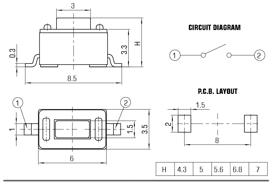 行程0.25mm±0.1mm